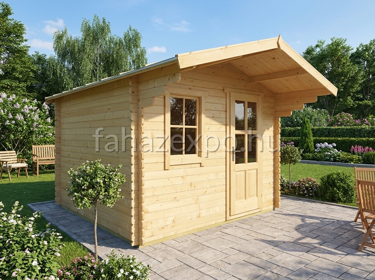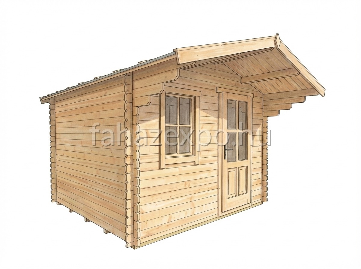 Közepes méretű, előtetős 1 ablakos kerti faház.
