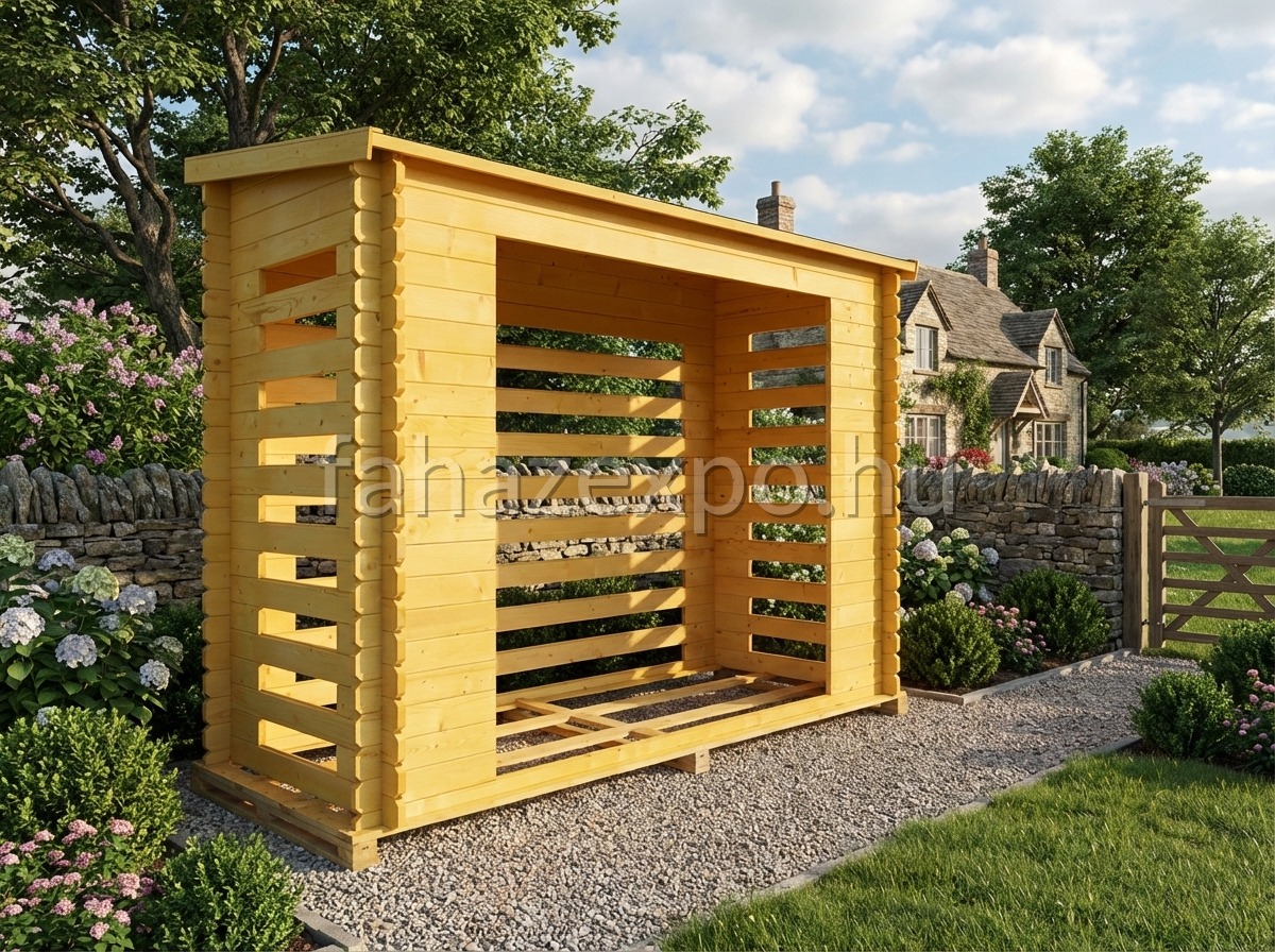 Tűzifa tároló 3 méteres, fedett – stabil fenyőfa szerkezettel